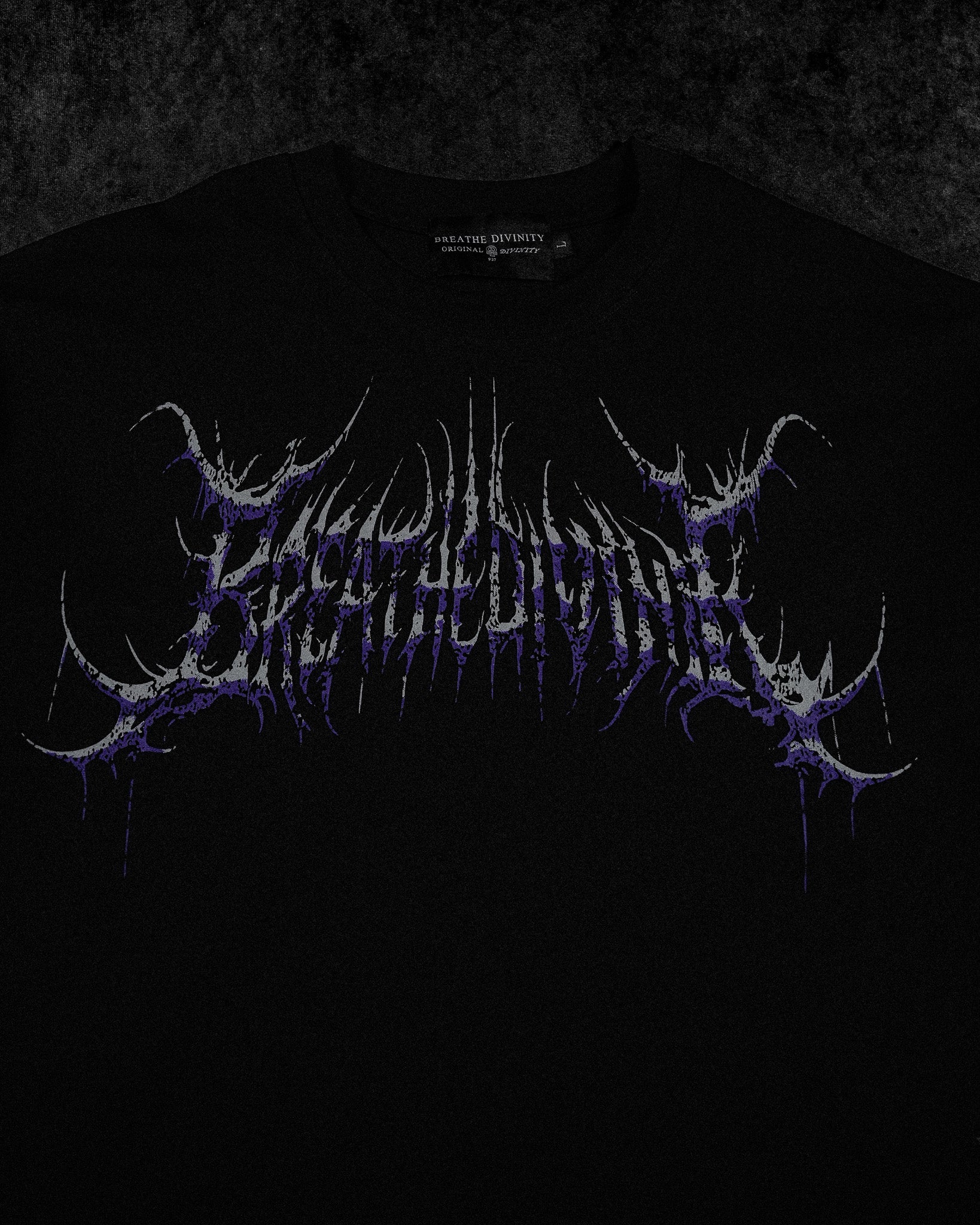 Silk screen printed BreatheDivinity Seraphim Chest logo, Back Logos, and Sleeve logos printed more than 4x to ensure lifetime durability