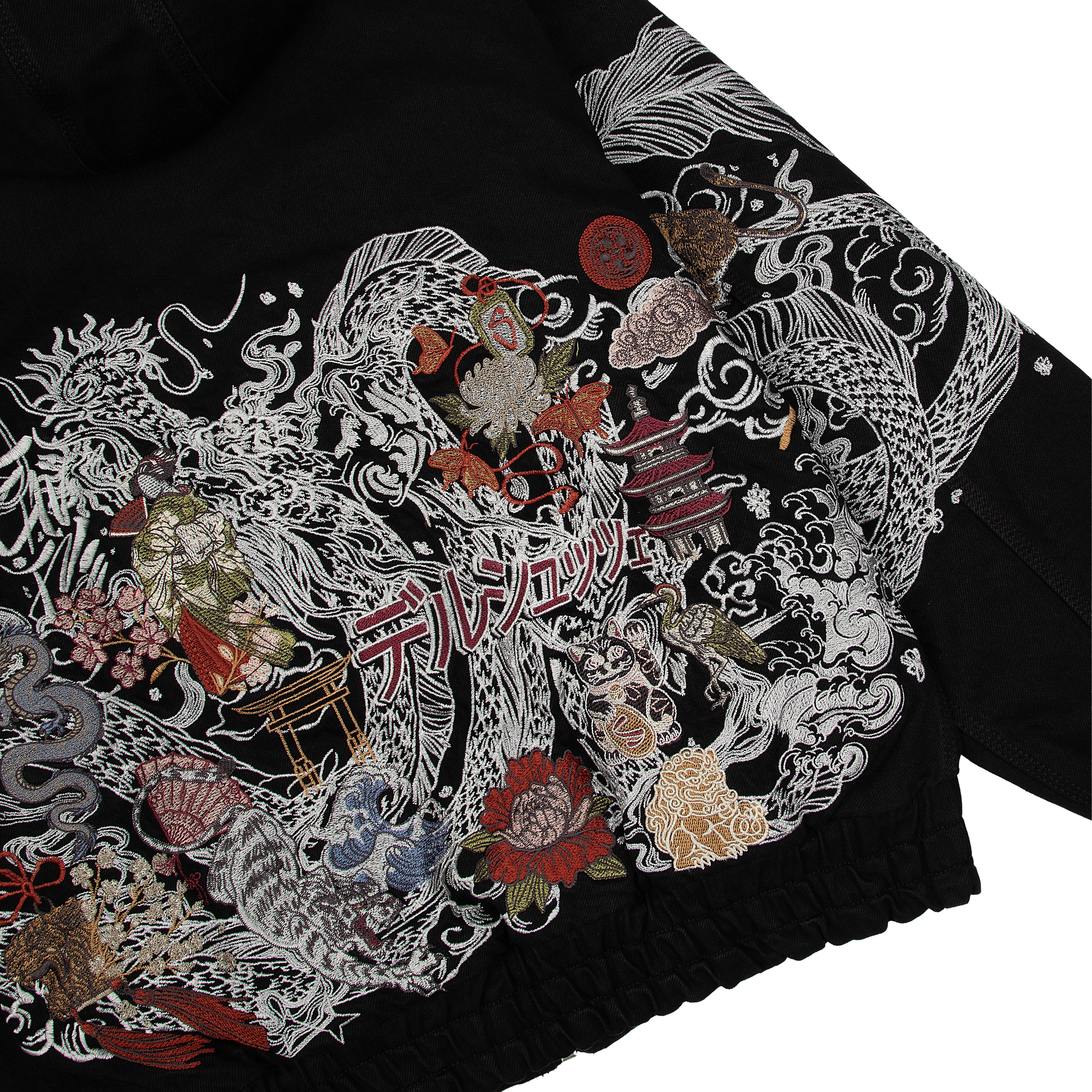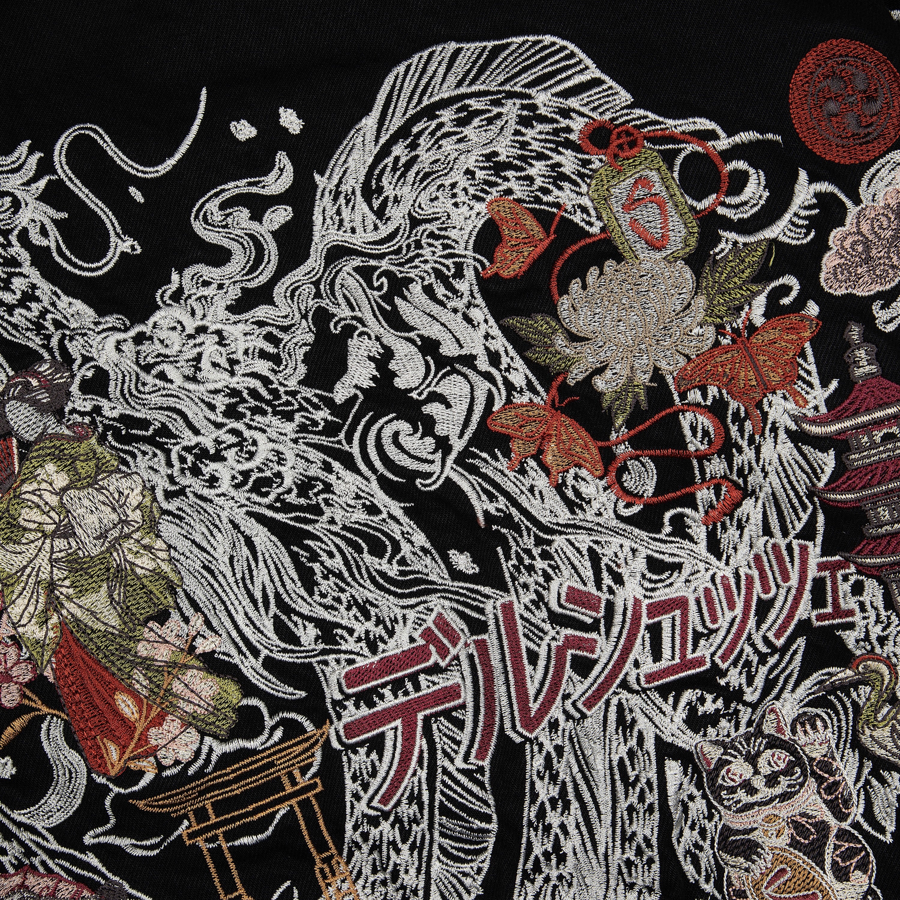 14oz denim / 100% cotton / quilted pattern lining / pocket inside / embroidery on back and sleeve / with YKK zipper / fits true to size